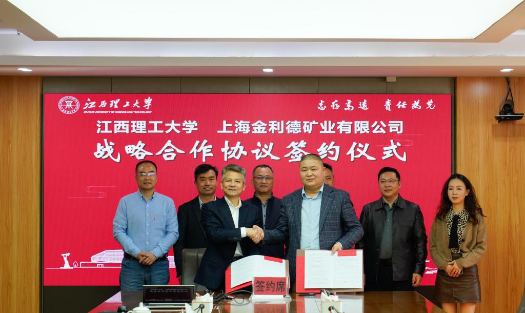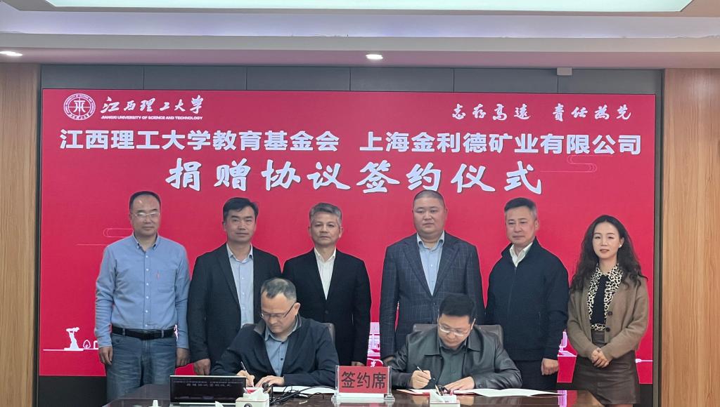 本网讯  3月24日,我校与上海金利德矿业有限公司战略合作协议、人才培养基金捐赠协议签约仪式在三江校区濂溪楼举行。上海金利德矿业有限公司创始人陈强、副总经理汪金良,江西强宇新能源有限公司总经理卫宇军,校党委常委、副校长董冰岩出席签约仪式,校国内合作促进中心主任、教育基金会副理事长兼秘书长许洪胤主持仪式。