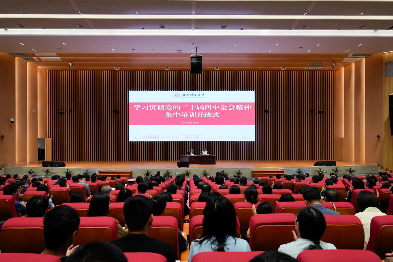 本网讯 4月8日-10日,我校在三江校区志远会议中心举办学习贯彻党的二十届四中全会精神培训班。培训紧扣学习贯彻党的二十届四中全会精神,聚焦创建“稀土及关键矿产领域世界一流大学”目标任务,贴合新一轮干部换届关键时期能力提升的迫切需要,采取线上线下相结合、集中研讨与个人自学相贯通的方式开展。学校全体科级及以上干部参加培训。南昌校区、先进铜产业学院(鹰潭)同步视频参会。培训班特邀南昌大学党委书记、江西省人民代表大会教育科学文化卫生委员会副主任委员罗嗣海作辅导报告,我校党委书记刘祖文、副校长黄志繁、汪航、宁洁分别作专题报告。校党委副书记徐志峰主持培训班。