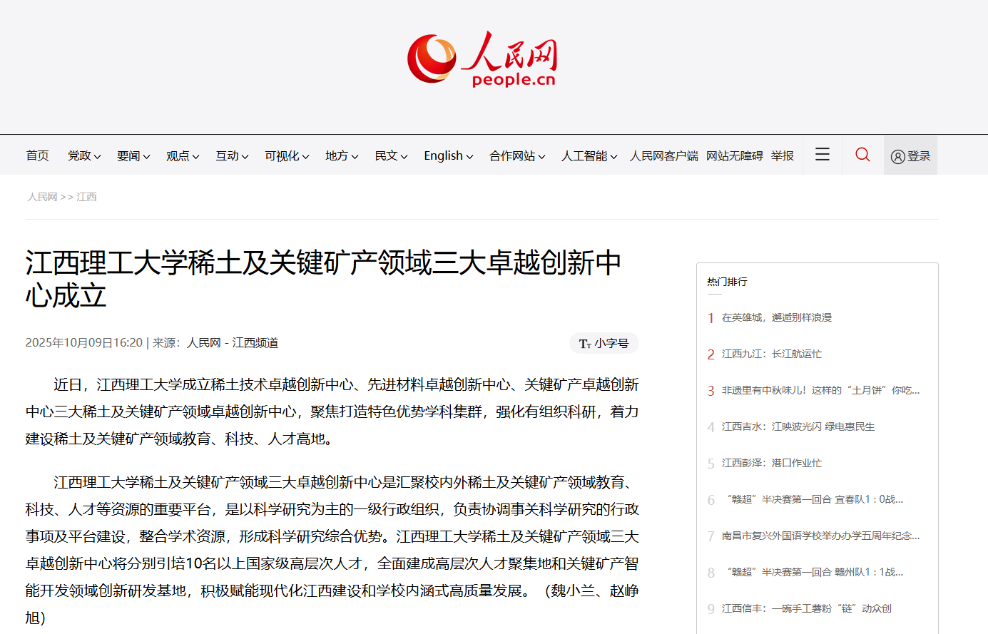 下一条:《凤凰网》:江西理工大学稀土及关键矿产领域三大卓越创新中心成立