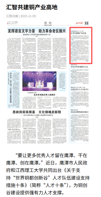 《江西新闻》:校地联动出台“人才十条”汇智共建铜产业高地