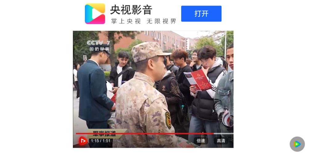 《央视军事报道》:2026年全国征兵报名今天开始 征兵宣传进校园 激发青年学子参军热情