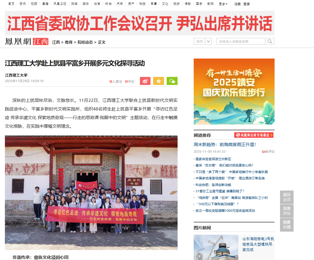 《凤凰网》:江西理工大学赴上犹县平富乡开展多元文化探寻活动