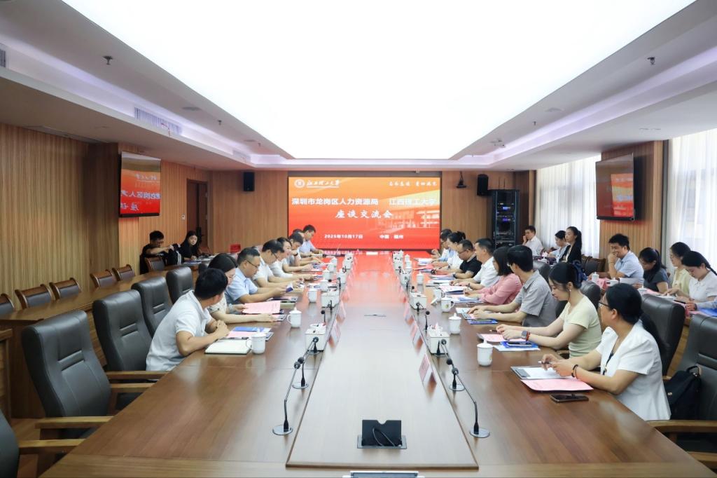 招聘会前,双方在三江校区濂溪楼2号会议室开展座谈。熊志华介绍了我校生源概况与人才培养体系,张伟球系统介绍了龙岗区的人才政策与产业发展优势。龙岗区企业代表分别就企业发展、岗位需求等内容进行介绍。
