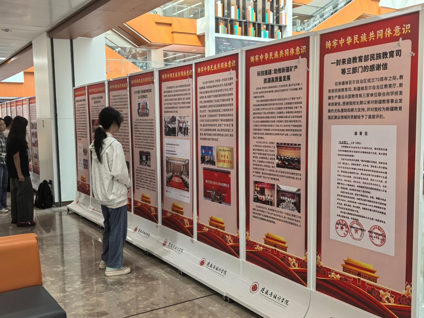 本网讯  为深入学习贯彻习近平总书记关于加强和改进民族工作的重要思想,促进我校全体师生进一步铸牢中华民族共同体意识,推动新时代学校民族工作高质量发展,10月30日,“铸牢中华民族共同体意识教育实践展”在三江校区(东园)图书馆二楼大厅举行。展览由党委统战部主办,党委宣传部、学生工作部、校团委协办,建筑与设计学院党委承办。