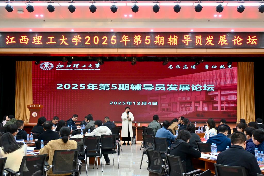 本网讯 12月4日,我校2025年第5期辅导员发展论坛在三江校区(东园)三实楼一楼多功能厅举办。校党委常委、副校长宁洁出席会议并讲话。保卫处、党委学生工作部相关人员及全体专兼职辅导员参加会议。南昌校区各学院、先进铜产业学院、电子信息产业学院辅导员在分会场聆听了报告。会议由党委学生工作部负责人刘传立主持。